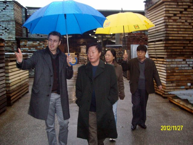 李华副校长一行冒雨,在Garbellotto公司总经理安东尼奥的陪同下,从酒桶的原料、木材加工到酒桶制作的每一环节进行了长达3个多小时详细的考察。考察后在与Garbellotto公司老板Mr.Garbellotto会谈中,李华副校长介绍了杨凌示范区、西北农林科技大学和中国葡萄酒的生产情况,王华院长介绍了马会六合彩 教学、科研情况,双方并就进一步开展合作研究等事项进行了友好会谈。王华院长向Mr.Garbellotto及安东尼奥总经理赠送了礼物。