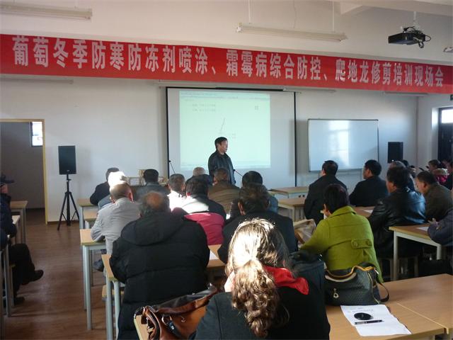 合阳葡萄试验示范站举办“葡萄冬季防寒防冻剂喷涂、霜霉病综合防控、爬地龙修剪培训现场会”