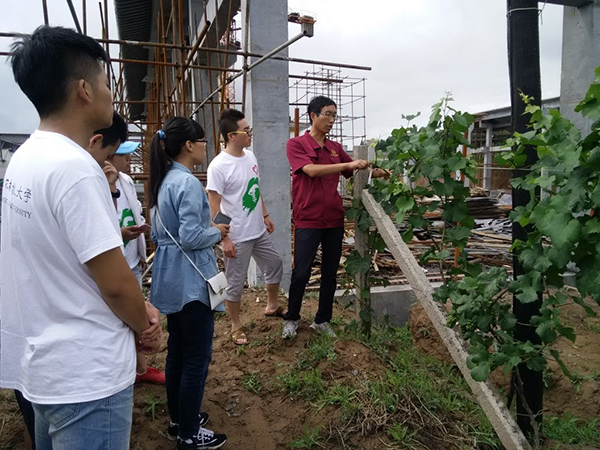 7月21日,赴山西酒庄葡萄酒生产状况调研队在酒庄工作人员的带领下参观了戎子酒庄的葡萄种植基地和农业科技示范基地。