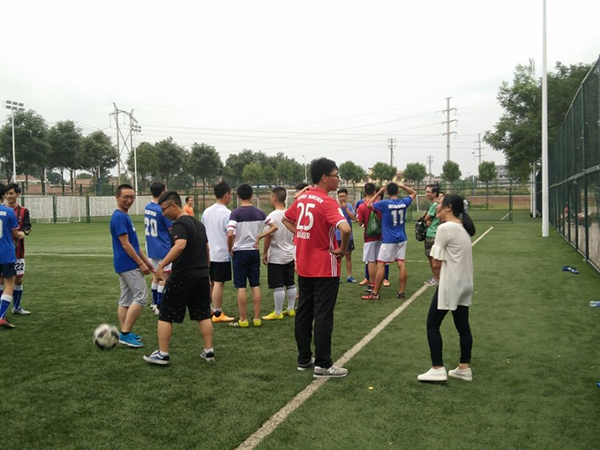 足球队员则是自由上阵,经过简单的热身后,正式开始比赛。