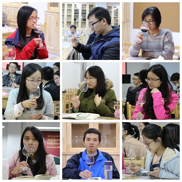 潘星伯同学介绍了品尝及盲品的相关基础;根据葡萄酒产地划分,分别为大家讲解全球各大主要葡萄产区的葡萄与葡萄酒在酸度、澄清度、口感及色泽等鉴赏指标上的特征;在品尝的实践中教大家鉴赏葡萄酒的基本步骤;并和同学们对品尝室现有酒杯的用途与特点进行讨论。