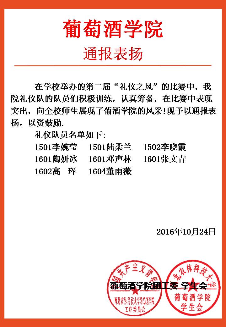 葡酒团〔2016〕33号 通报表扬_西北农林科技大学马会六合彩