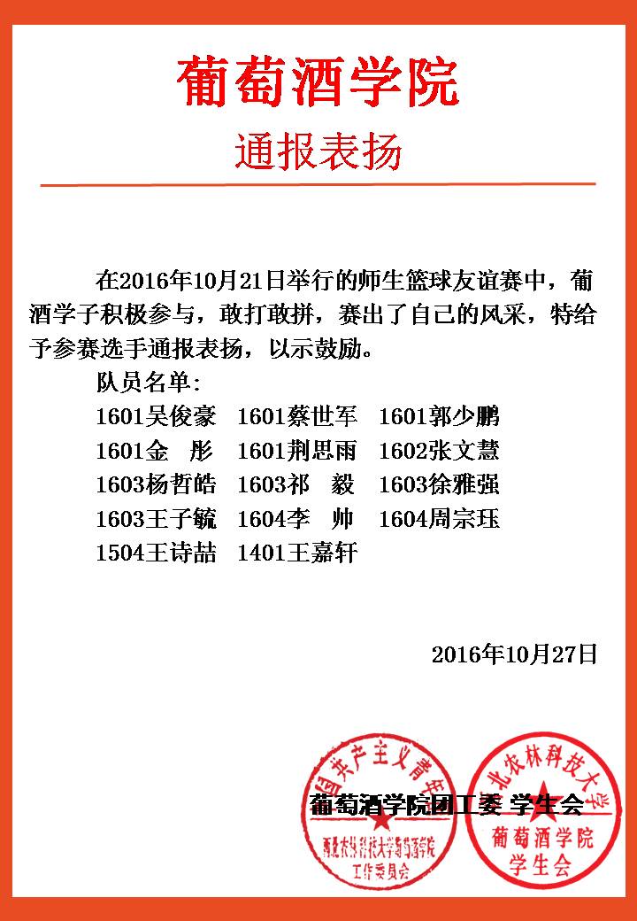 葡酒团〔2016〕34号 通报表扬_西北农林科技大学马会六合彩