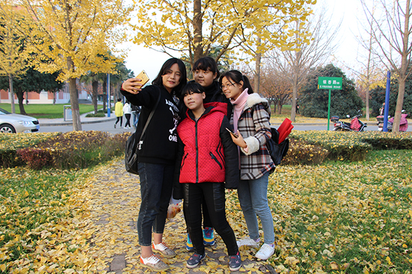 正值银杏叶落,金黄的叶子展示着秋末的美丽。西社学生看到如此漂亮的校园一隅,亦是十分开心。大手拉小手,谈谈知心话,叙叙暖心事,好不温暖。一名西社学生临走前把自己随身携带的刻了自己名字的手环,送给了陪伴自己两天的志愿者姐姐。美好的秋日,天真的少年,一切都是那么美好。