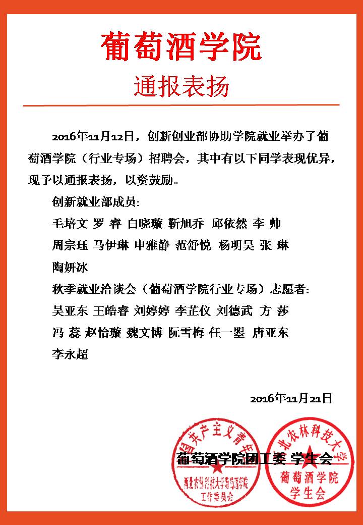 葡萄酒团(2016)40号通报表扬 _西北农林科技大学马会六合彩