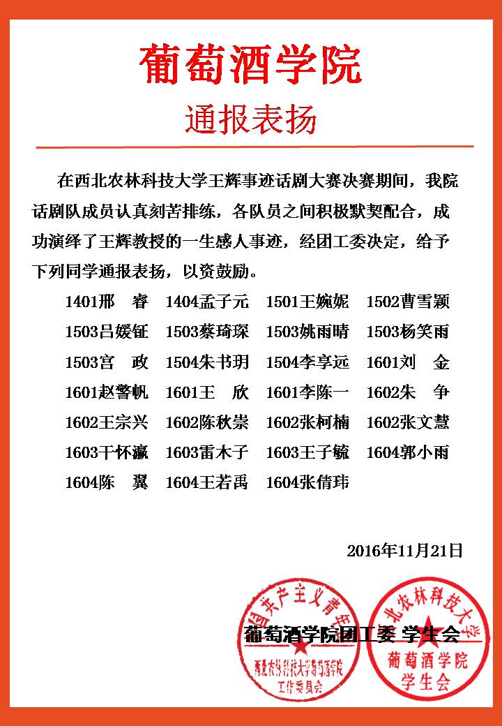 葡萄酒团(2016)41号通报表扬_西北农林科技大学马会六合彩