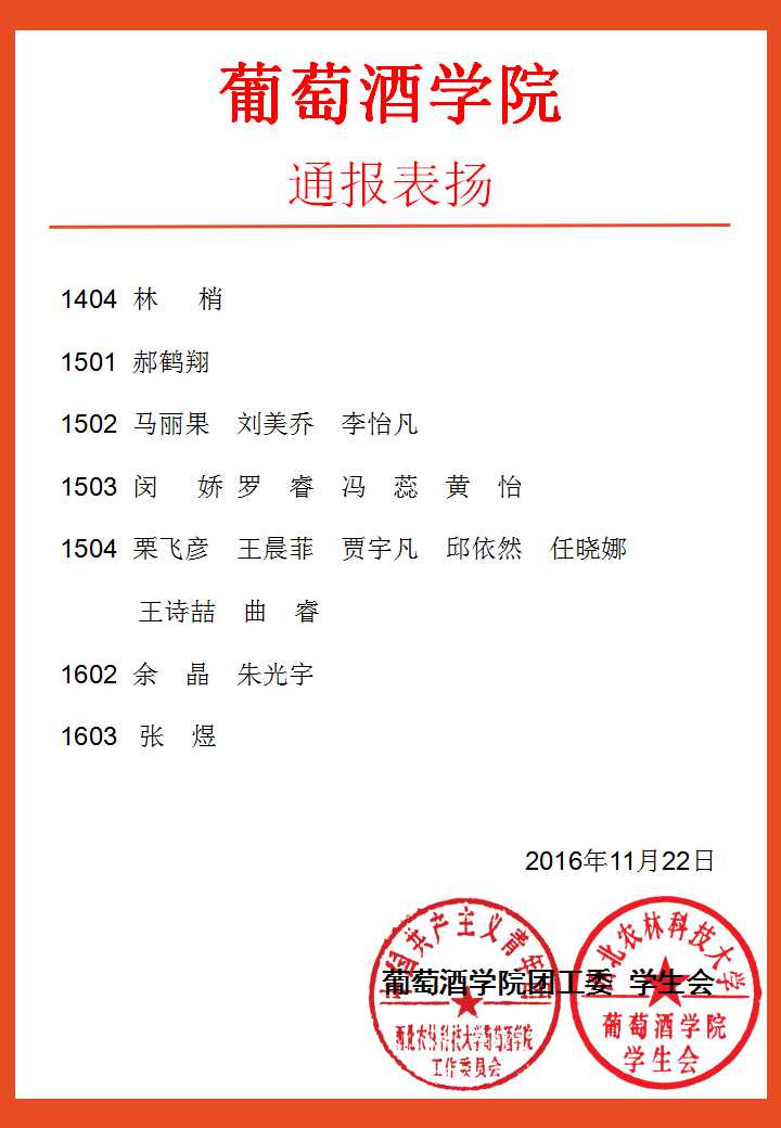 葡萄酒团(2016)42号通报表扬_西北农林科技大学马会六合彩