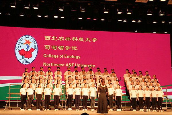 的荣誉。在薛雪老师的耐心指导下,八十位学生积极投身训练,努力把《光荣啊,中国共青团》和《光荣与梦想》两首歌唱出属于我们葡酒人的独特风姿!