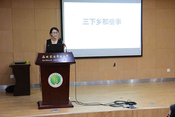 的陆佳玲学姐在大会上也分享了三下乡活动的经验,她对细节问题做了细致的补充,比如答辩时的礼貌问题,与目的地负责人的沟通问题,还有答辩时的前期准备。