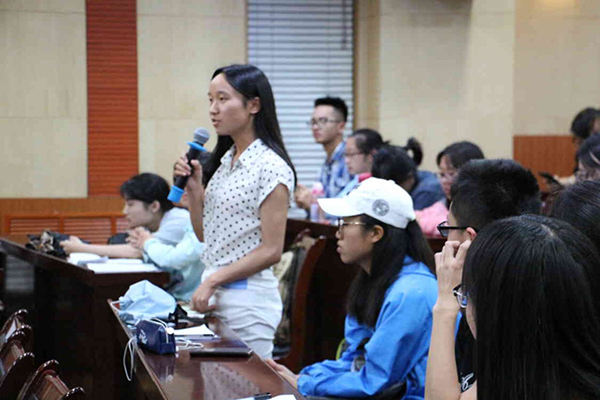 的学长晁爽向同学们解释了WWF组织,强调了活动的宣传问题和活动后释放压力的方式。最后,同学们踊跃地提问,学长们耐心和热情地解决了他们存留的困惑。