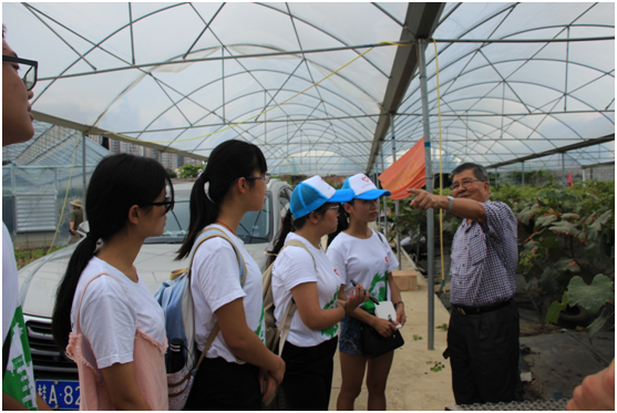 在调研过程中,调研小队了解到广西种植的葡萄品种多为欧美杂交种,采取的是广西区域特有一年两收果的种植方式。由于冬天雨水少所以葡萄在糖分得以提高的同时其表皮也比较光滑美观,这些使得第二季果的品质往往优于第一季果。调研队还有幸遇见来自台湾的陈教授。在他的讲解下,调研队成员们了解到广西一年两收的模式正是从台湾一年四季有果的模式引进转化而来的,而陈教授就正是这个过程中的核心技术人员。