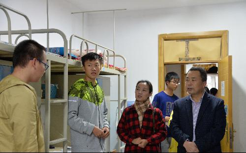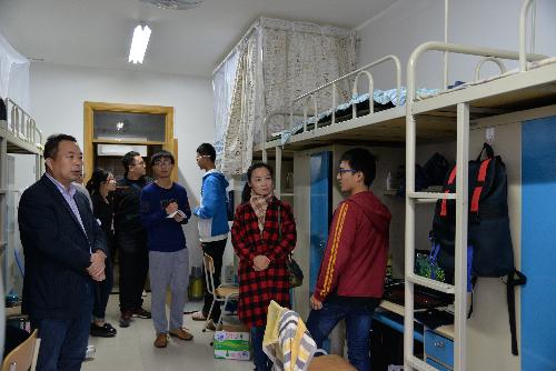 党委书记胡俊鹏,党委副书记邓亚丽和全体辅导员深入学生宿舍,看望慰问学生,了解学生十一假期返校情况。