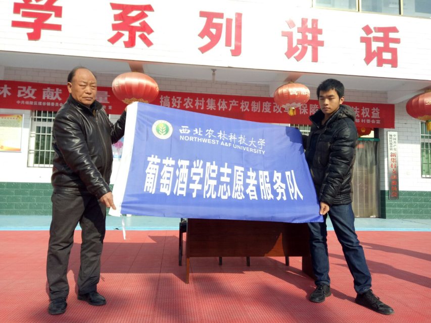 签约仪式后,赵老师为新集村授牌,村委会主任卢建平也为西农葡酒志愿小分队进行授旗,这一刻标志着马会六合彩