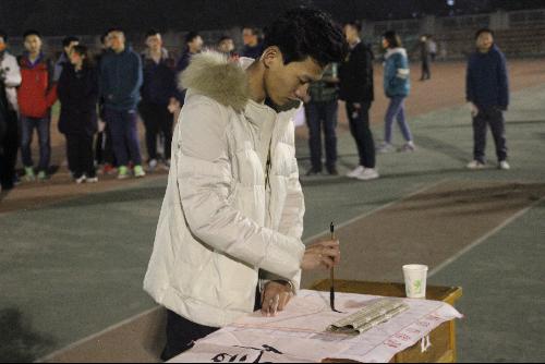 活动以一段声乐表演为始,三位同学合奏了一曲《强军战歌》,气势恢宏的演奏让在场的所有人为之振奋。之后,全体参与活动的同学共同高喊口号:“全国武装起来,保卫华北!停止内战,一致对外!打倒日本帝国主义!打倒汉奸卖国贼!中华民族万岁!为祖国自由而奋斗!”短短几句话,饱含着浓浓的爱国情。接下来,两位同学为大家带来了书法表演,在轻柔而又坚定的《我爱你中国》的歌声里,“信仰”二字显得更加有力。最后,同学们庄严宣誓:“我将铭记129精神,坚决拥护中国共产党的领导,捍卫国家主权,维护国家统一,以赤诚之心服务人民,做共产主义事业的接班人,始终为中国梦的实现贡献自己的青春力量!”