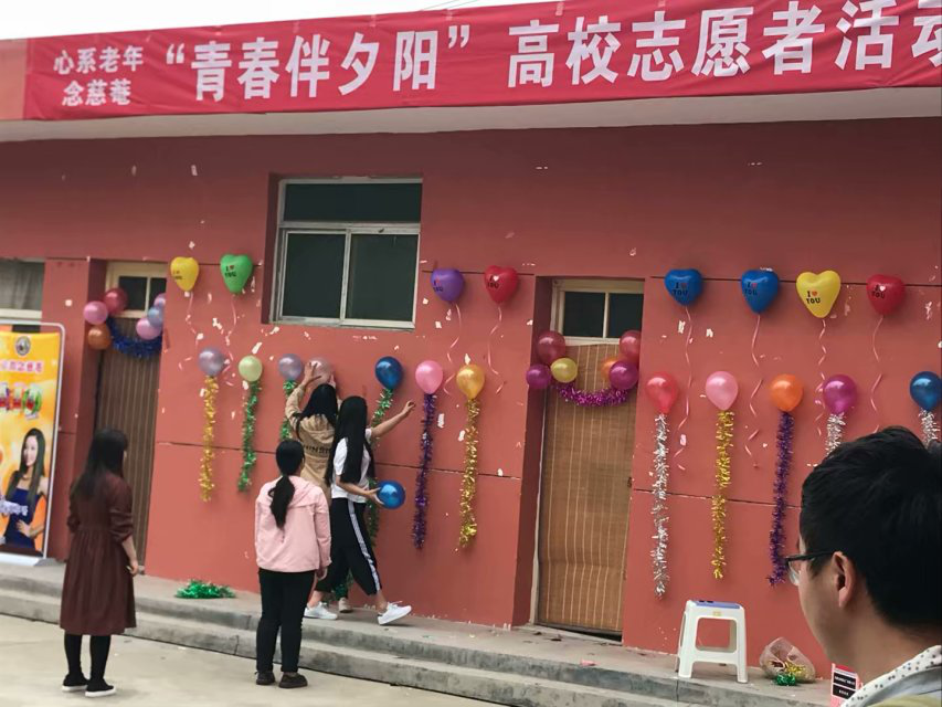 4月22日上午由社践部带队,志愿者们骑车前往杨凌福利院同校阳光团工委一同开展了“青春伴夕阳”关爱孤寡老人与孩童的志愿行动。志愿者们参与布置活动会场,还组织安排了腰鼓、话剧、街舞等众多节目,与爷爷奶奶们共度欢乐时光,还有一位老爷爷上台演唱歌曲,掀起了又一次高潮。欢声笑语,情意浓浓,此次活动进入了尾声,志愿者们和爷爷奶奶以及小朋友们合照留念后,便依依不舍地返回了学校。