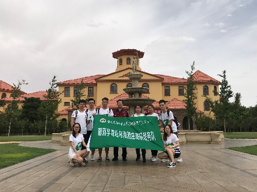 赴乌海酒庄调研服务队全体成员来到了金沙沙恩酒庄。沙恩酒庄坚持葡萄种植无污染、无病虫害、不用化学肥料和农药;坚持“原料基地化,基地品种话,品种区域化”等原则;同时,金沙酒业集团加紧沙恩国际庄园的旅游开发,庄园景区按照国家5A级旅游景区标准建设,是集食、住、游、购、娱一体化的游玩的特色旅游景区并已成为国家4A级旅游景区。