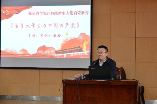 副院长郭洪水教授为2018级本科生、研究生以《青年大学生与中国共产党》为题做大学生入党启蒙教育报告,进一步加深新生对党的认识,提高新生的政治思想觉悟,激发新生对党的信仰和追求。