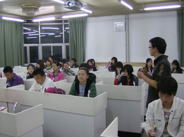 同学(特别是没有接触葡萄酒专业课的同学)在上正式学习专业课之前进行必要的葡萄酒感官方面的了解,且对国外的葡萄酒及葡萄酒产区进行有个初步的认识,为以后的学习奠定一定的基础。俱乐部是以会员制的方式组建,并保留了适当的机动名额。品酒俱乐部按照会员的需求将会员分成初级会员和中级会员两种。 这次品酒俱乐部所品尝的三款酒分别是来自澳大利亚猎人谷Yarraman酒庄的08年的bolter 霞多丽干白、来自智利的Santa Rita 120 酒庄08年长相思干白以及来自美国加州的Beringer 2007的Classic White干白葡萄酒。 这次品酒的主要目的是为了让会员了解葡萄酒品尝的基本过程,初步培养会员对葡萄酒的兴趣,进而了解主要新世界国家葡萄酒的特点,以及对Chardonnay和Sauvignon Blanc的品种特点。 品酒活动从晚上19:30开始持续到21:30。活动开始时,会员们观看了张裕品酒师克瑞斯趣谈葡萄酒品尝的视频。然后开启了第一款酒,由同学演示并和会员交流进行葡萄酒品尝的基本过程。其次是第二款酒、第三款酒。在品尝每款葡萄酒的同时,用PPT将这款酒的基本信息以及该款酒所涉及的产区酒庄等信息和会员进行分享。在品酒的最后,会员们根据自己的感受填写了葡萄酒品尝描述记录表,并以各种形式进行了广泛地交流。