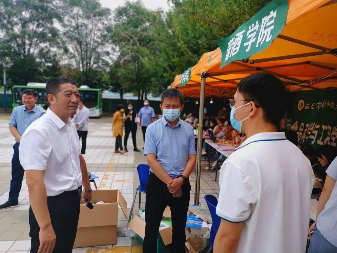 党委书记郭建东、院长刘树文、党委副书记徐三友、院长助理孙翔宇、研究生秘书梁润雅仔细了解新生报到的具体情况。领导、老师们与前来报到的研究生新生进行了亲切地交流,询问其家乡、学业规划和手续办理等情况,并对参与迎新的志愿者们的热心举动给予了充分赞赏和肯定。