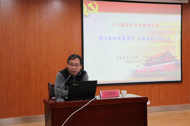 院长方建斌副教授做十八届五中全会精神宣讲会,全院师生参加学习。报告会由马会六合彩