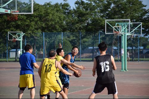 比赛在激烈、友好的氛围中开始。参赛的师生热情洋溢,以饱满的精神状态展现了各自不凡的实力。伴随着开场哨的吹响,教师队先声夺人,抢球、上篮、进球,毕业生队也毫不退让,很快两队比赛进入了白热化的境界。两队比分不断拉近,势均力敌,赛场上传来阵阵加油声和叫好声。伴随着时间的流逝,同学们仍保持着青春活力,比分交替上升。由刘树文副院长等组成的教师队虽然体力有所下降,但他们凭借完美的配合和娴熟的技巧,稳定拿分。