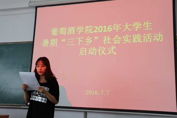 “三下乡”重点项目团队队长陆佳玲同学代表全体队员发言。佳玲同学说,暑期“三下乡”社会实践活动不仅给全校学生搭建了实践锻炼的广阔舞台,更让葡萄酒专业的学生有机会深入产区体验和感受中国葡萄酒的蓬勃发展,从而开阔眼界,增长才干,并将这份收获融入到专业学习中。佳玲同学还代表“三下乡”社会实践的全体同学郑重承诺“听从带队老师指导,保障人身财产安全;做好充分准备,认真实施计划,出色完成任务;注意自身形象,展现西农人诚朴勇毅的精神面貌。”