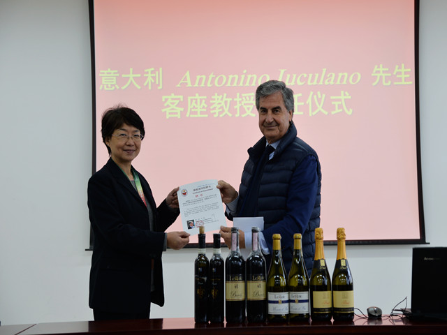 客座教授。王华院长为Antonino先生颁发聘书,并赠予西北农林科技大学纪念品。