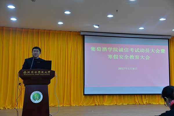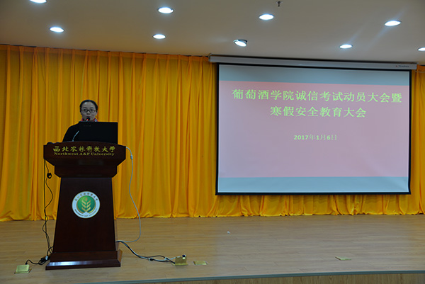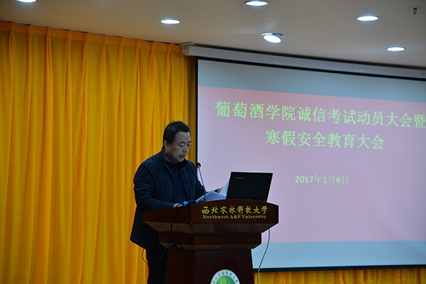 召开诚信考试动员大会暨假期安全教育大会,院长房玉林、院党委书记胡俊鹏、副院长刘树文、副书记邓亚丽、院长助理刘旭及全体班主任、辅导员和相关教师出席大会,马会六合彩