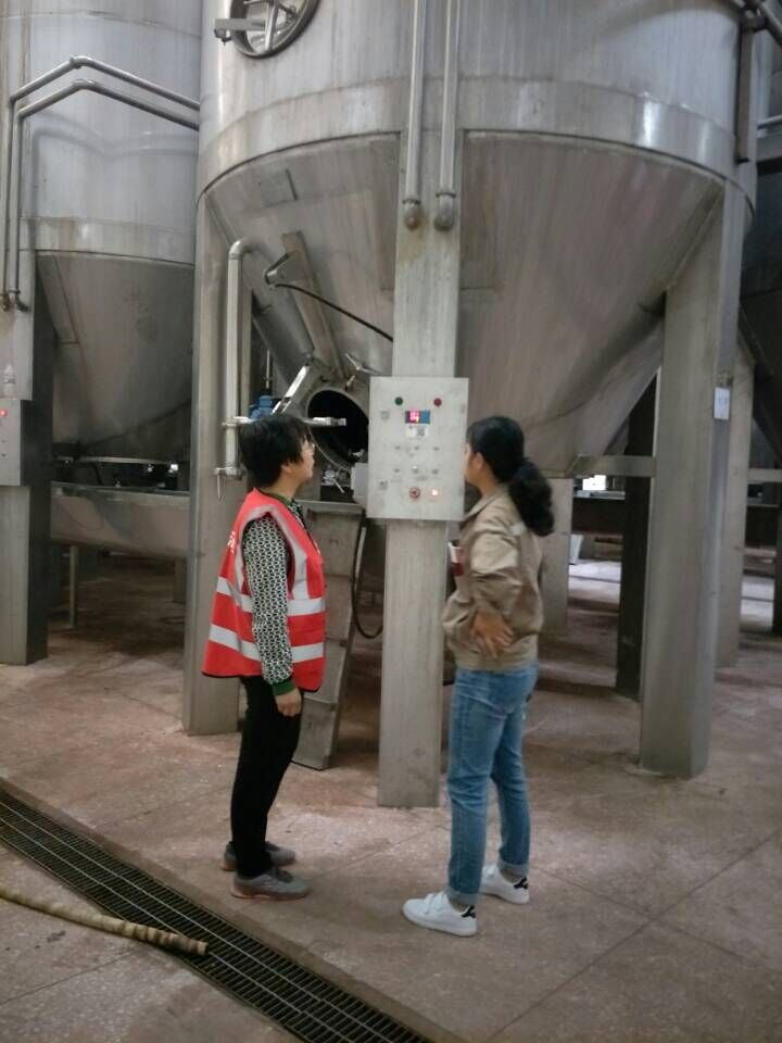 9月6日一早,同学们进入到生产岗位。在师傅的带领下,很快熟悉了岗位职责。原料验收岗位的李硕从葡萄采样、扣杂、测糖、登记、建档动作麻利,有条不紊。发酵车间的同学们认真记录着发酵过程的各组数据,同时也虚心向师傅们请教这葡萄酒工艺中各种问题。