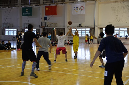 伴随着一声哨响,教师队和学生队展开了激烈的角逐。师生双方抢球、断球、卡位、盖帽,和对手严守硬对、激烈争夺的同时,也不忘与队友默契传球,一次次完美配合,赢得了场下观众的阵阵喝彩声。教师队利用丰富的经验,稳扎稳打,学生队拥有充沛的体力,朝气蓬勃,强强对决,双方丝毫不曾放松,带球突破,挡拆结合,每个动作都帅气利索、针锋相对。最后学生队以42:44的二分之差惜败于教师队,但场上的激烈角逐与场下的声声呐喊会在每位参与者的心上留上浓墨重彩的一笔。
