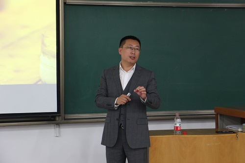 郭明浩校友首先围绕职场,分享自己加入跨国公司为葡萄酒品牌运营打拼的十年职场经历,如何放下一切从零开始创业创立知酒工作室,投身于葡萄酒培训教育,开设葡萄酒CMO品牌营销课程。郭明浩的每一步都稳扎稳打用心专注,目前他的葡萄酒脱口秀网络浏览量超过了四百万,成为出色的市场营销人(Marketer), 也是葡萄酒行业著名的意见领袖,常常以他独一无二的方式推广葡萄酒文化。接着,郭明浩为我们分享了他的读书感悟。他今天的选择来源于他爱看书的习惯。他强调要深入了解葡萄酒,应该有针对性地看书,除了专业类的书籍外也应该注重人文社科和历史类书籍的涉猎。他的著作《葡萄酒这点事儿》,正是他爱读书、读好书的积累。最后,郭明浩分享了他的旅行经历。他实地探访了各大世界知名产区,重走“丝绸之路”上的中国名庄,通过一张张的旅行照片为我们展现了当地的建筑、风景,分享了旅途中一个个的小故事,现场的同学们被深深地吸引了。