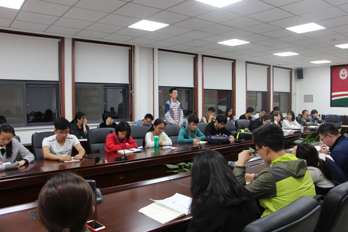 积极备战校运会的组织发动和训练进展,并重申了各项目四位一体的组织训练责任体系,即“项目队长、负责团学部门、主席团成员、辅导员”。辅导员朱美蓉老师解读了《关于评选2018年春季运动会先进班集体、明星项目团队及先进个人的通知》。