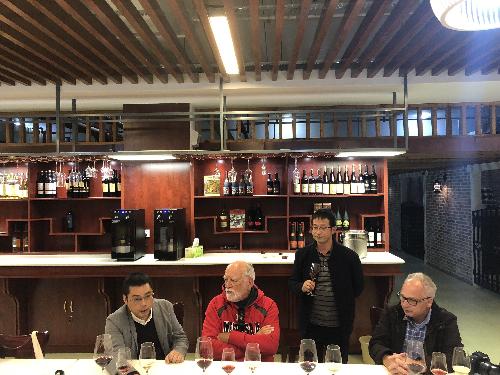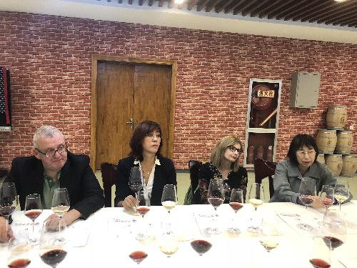 工艺学实验室、葡萄酒感观分析平台、葡萄栽培学实验室和地下酒窖。在地下酒窖,郭安鹊副教授安排三位海外专家品尝李华葡萄酒,三位专家对所品尝的霞多丽干白、媚丽桃红和赤霞珠干红葡萄酒予以高度赞扬。