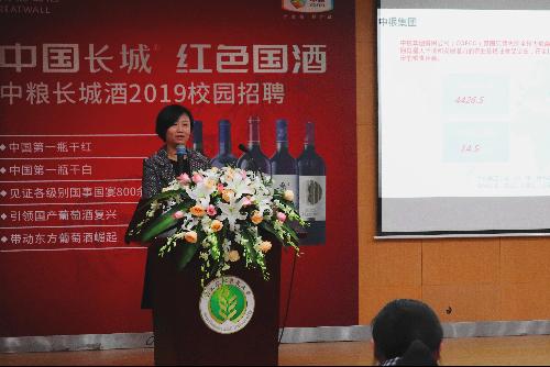 2018年11月16日下午,中粮长城酒业2019首场校园招聘会在北绣山活动中心北报告厅举行。中粮长城酒业副总经理盛国红、供应链管理中心总经理兼技术中心主任韩朝武及马会六合彩