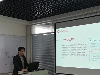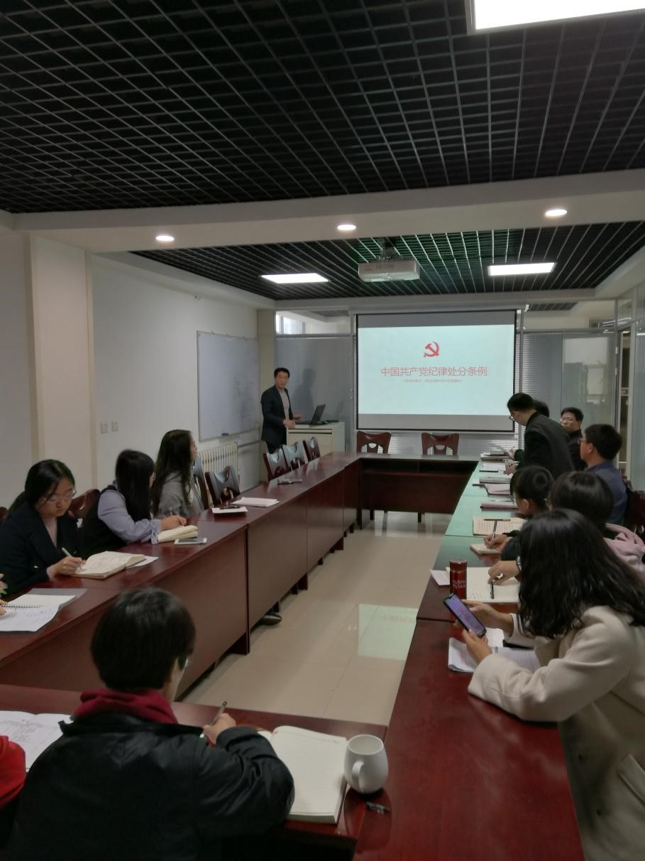 4层党员活动室,刘树文同志为葡萄酒学党支部全体党员讲解了《中国共产党纪律处分条例》,党课内容丰富、生动详实。
