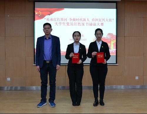 赵志业老师和高宝山老师对本次比赛给予了高度评价,他们希望广大党员在本次活动的感召下,认真诵读和学习红色家属中的经典名篇,学习革命先烈的光辉事迹,要秉承和发扬革命精神,为学校,为国家的发展贡献自己的力量。经过评委打分,王雅楠获得一等奖,兰惠晶、叶言文获得二等奖,任一曌、袁林、杨明昊获得三等奖,林佳丽、周松、陈莉、 吴璐璐、曾桂花、康馨文、王文获得优秀奖。