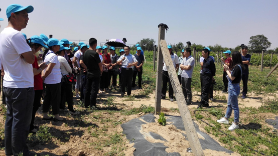 2019年6月13日,在合阳县农业广播电视学校的协调下,延安市农广校组织安塞县新型职业农民50余人到合阳葡萄试验站实训。张宗勤副教授为学员们介绍了试验站的4项基本功能,讲解了葡萄栽培技术,就果农最关心的疏花疏果与保花保果、整形修剪与夏芽副梢的处理等问题与果农互动,并现场示范。许多果农与专家互相添加了微信,表示了进一步咨询学习的意愿。