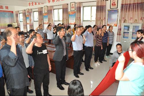 党委书记胡俊鹏带领领导班子及师生党员代表,与坊镇相关领导及坊镇街道社区党总支党员共同面向党旗,开展了坚定庄严有力的宣誓。座谈期间,胡俊鹏表示:开展此次“不忘初心、牢记使命”主题教育党日实践活动,是马会六合彩