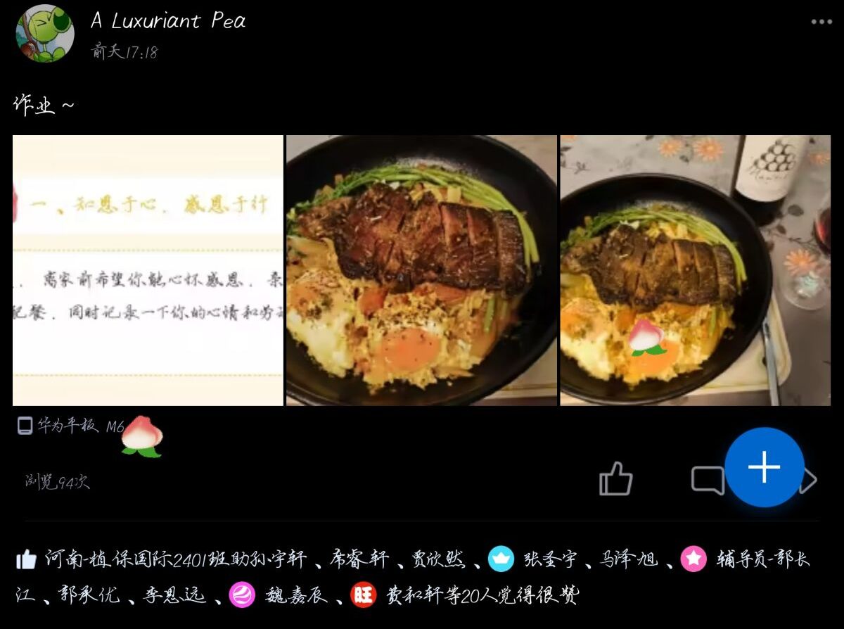 前置教育,由“新”而生。在西农90周年校庆这一具有纪念意义的节点,为2024级小葡萄们精心策划了一系列入学作业,涵盖感恩教育、校庆祝福、生涯规划三大板块。号召新生为家人“烹饪一顿美食,品味一杯葡萄酒”,教育和引导新生常怀感恩之心;引导同学们了解西农、认识西农,为西农九十周年校庆献上祝福,培养爱校荣校、知农爱农情怀;倡导同学们谱写大学成长蓝图,初步培养生涯规划意识。